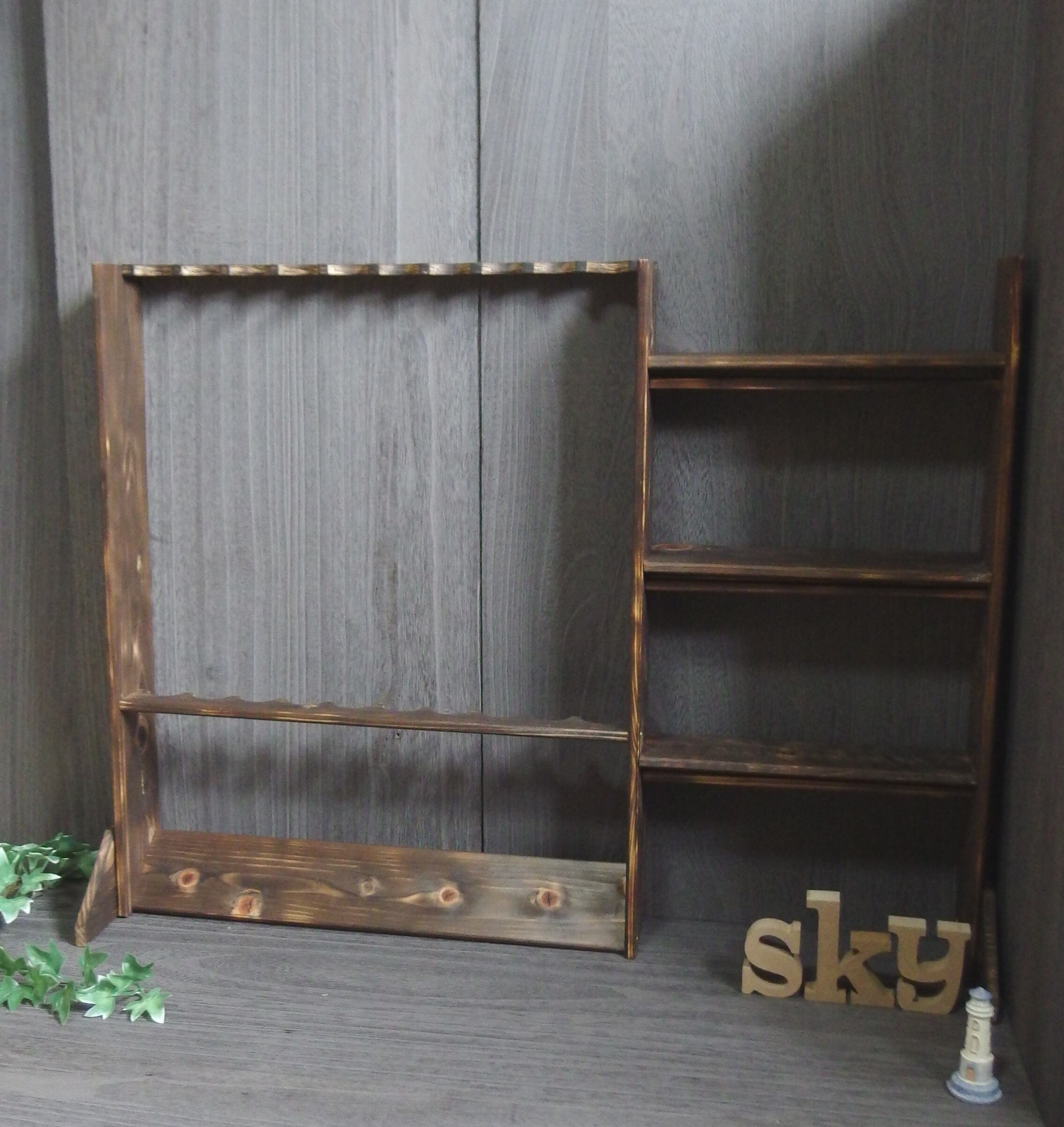 ロッドスタンド 10本 リールスタンド 焼き加工 小物置き 国産ヒノキ製