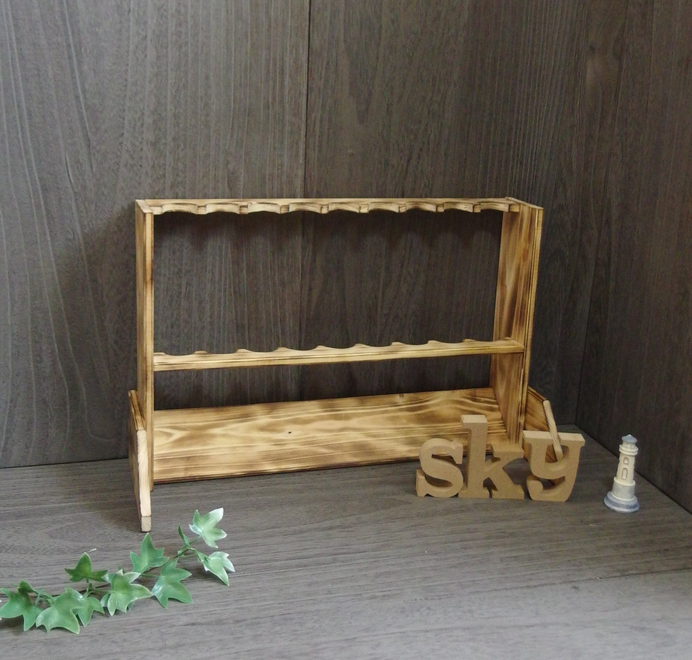 ロッドスタンド 9本 炙り加工 国産ヒノキ製