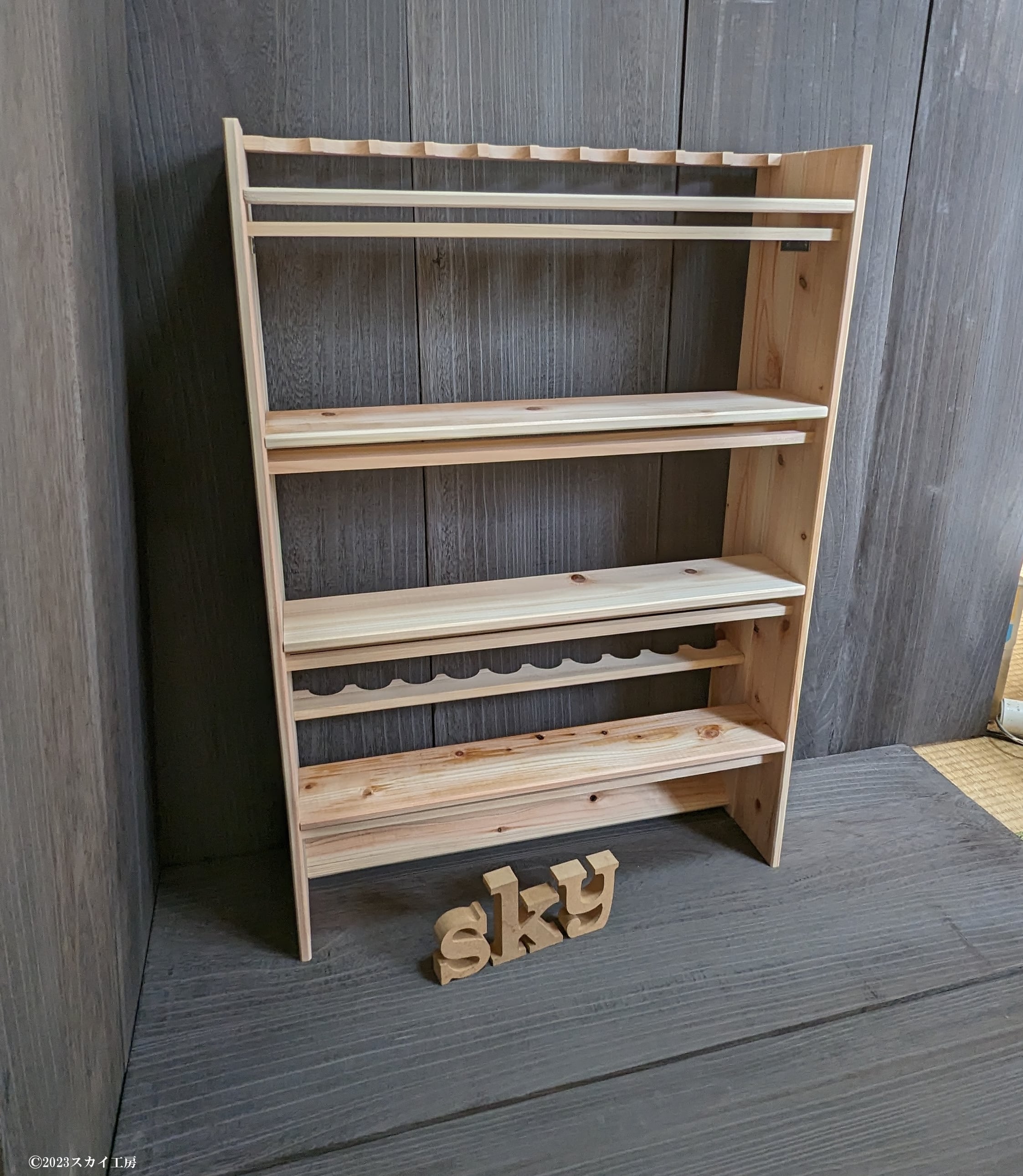 ロッドスタンド 10本 一体式リール&ルアースタンド 4段 国産ヒノキ製 完成品